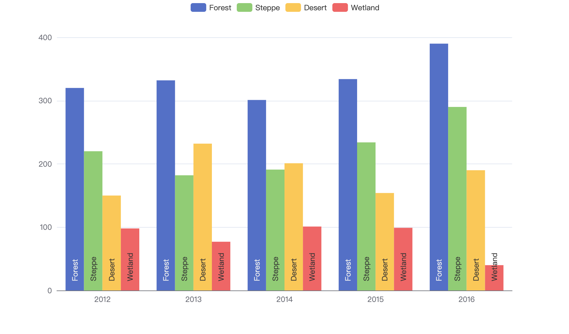 The dynamic sorting chart shows the derivation of different categories in the ranking over time. The developer can enable this effect in ECharts with a few simple configuration code.